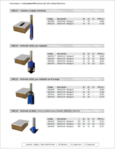 Catálogos actuales Tarifa PVP 2025 - Cuchillas cepilladora MD (HM) Catálogo tarifa PVP de cuchillas para cepilladora de MD (HM, metal duro). Ver