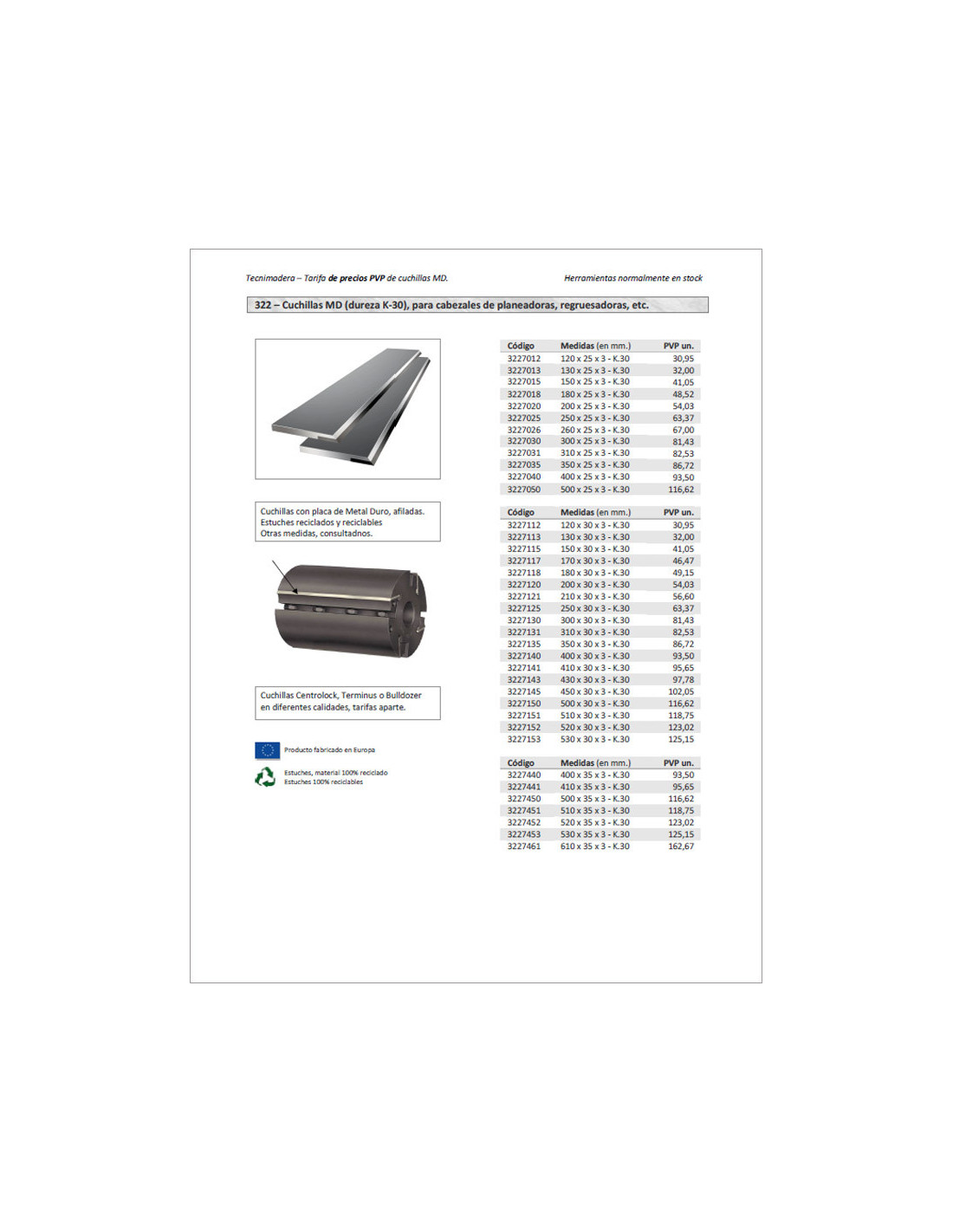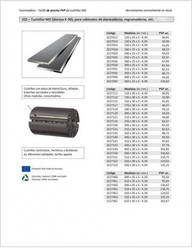 Catálogos actuales Tarifa PVP 2025 - Cuchillas integrales de MD Catálogo tarifa PVP de cuchillas integrales y reversibles de MD. Ver