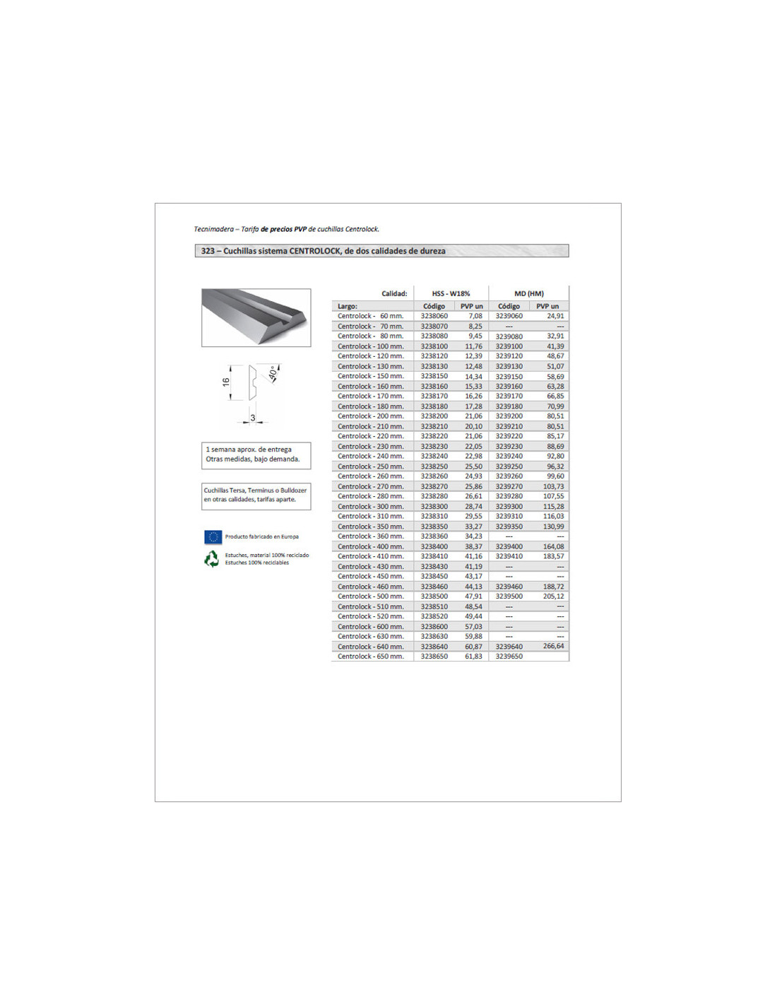 Catálogos actuales Tarifa PVP 2025 - Cuchillas cepilladora MD (HM) Catálogo tarifa PVP de cuchillas para cepilladora de MD (HM, metal duro). Ver