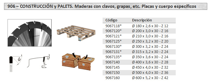 Stock: Las sierras con un * a la derecha del código, están en stock, excepto venta. Resto, consultar a tienda@tecnimadera.es
