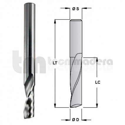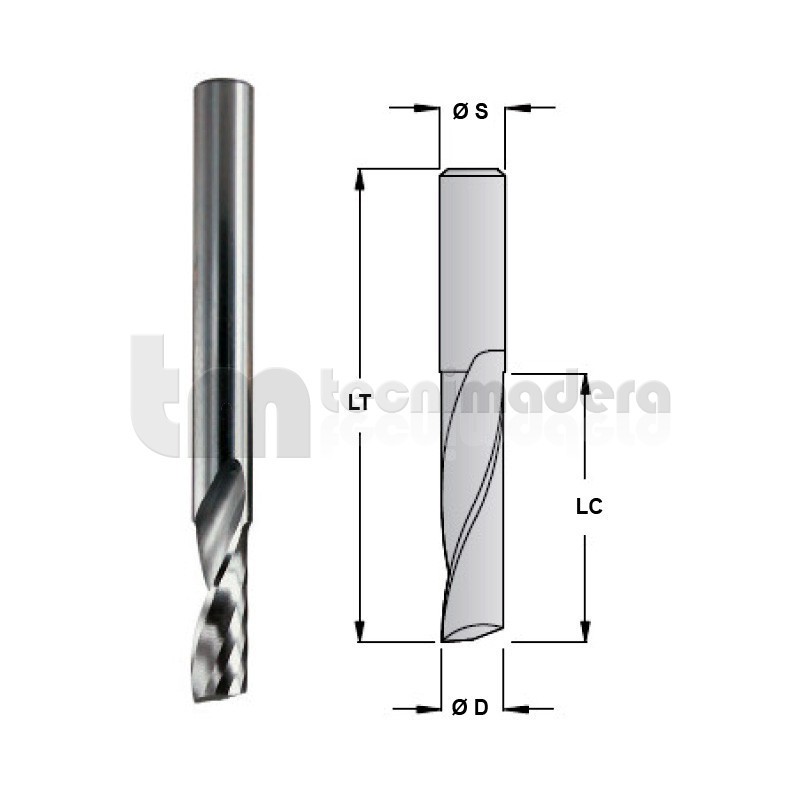 Fresa de 1 corte (Z1), helicoidal positivo, giro derechas.