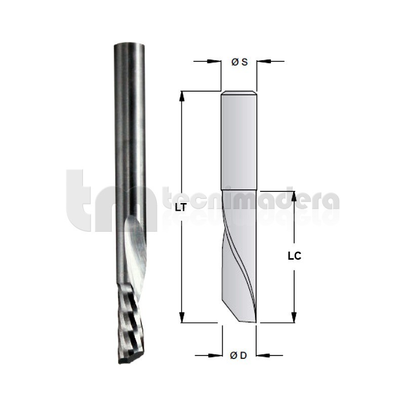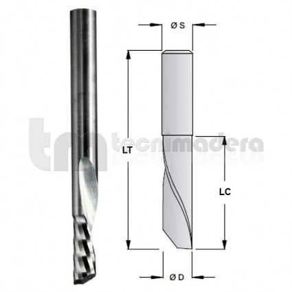 Fresa de 1 corte (Z1), helicoidal negativo, giro derechas.