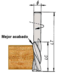 • Los helicoidales negativos, dejan el mejor acabado en la parte superior del material que se trabaja.