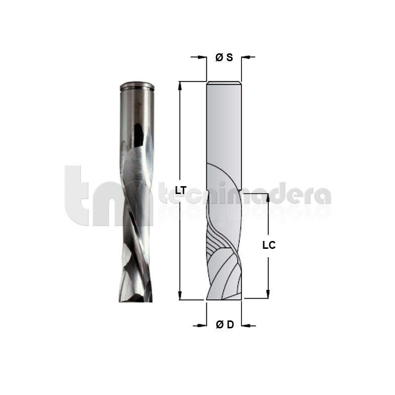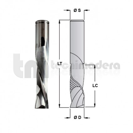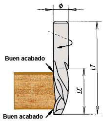 Fresa de 2+2 cortes (Z2+2), helicoidal positivo y negativo, giro derechas.