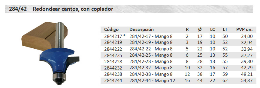 284/42 - Fresa para redondear cantos, con copiador