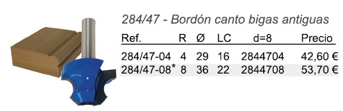 284/47 - Fresa para realizar radio del canto, en vigas tipo antiguo