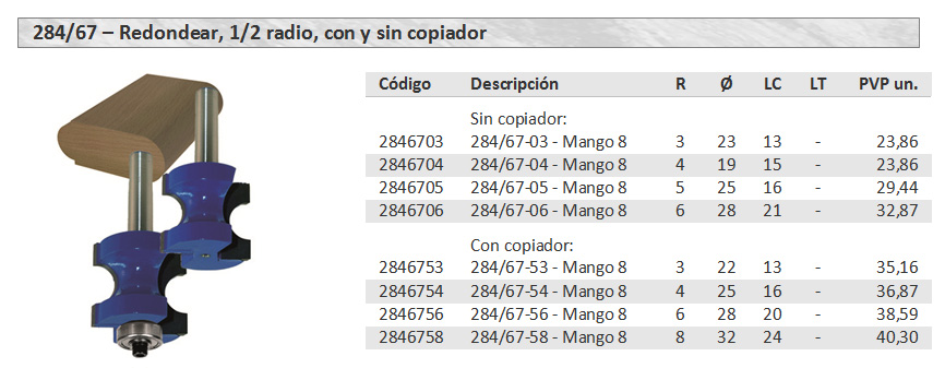En stock Fresolines portátil 284/48 - Perfil decorativo, copiador 284/48 39,96 € 284/48 - Fresa para perfil decorativo, con copiador Ver