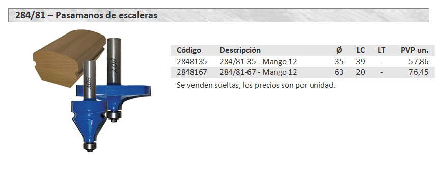284/81 - Juego de dos fresas para realizar pasamanos de escaleras.