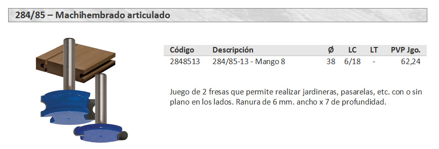 284/85-13 - Juego de 2 fresas que permite realizar jardineras, pasarelas, etc. con o sin plano en los lados.