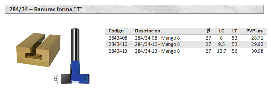 En stock Fresolines portátil 284/85 - Jgo. machihembrado articulado 284/85 62,24 € 284/85-13 - Juego de 2 fresas que permite realizar jardineras, pasarelas, etc. con o sin plano en los lados. Ranura de 6 mm. ancho x 7 de profundidad. (Precio del juego de 2 fresas) Ver