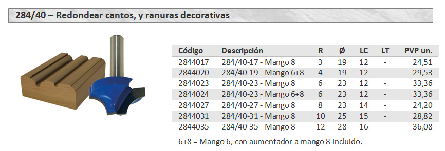 284/40 - Fresa para redondear cantos, y ranuras decorativas