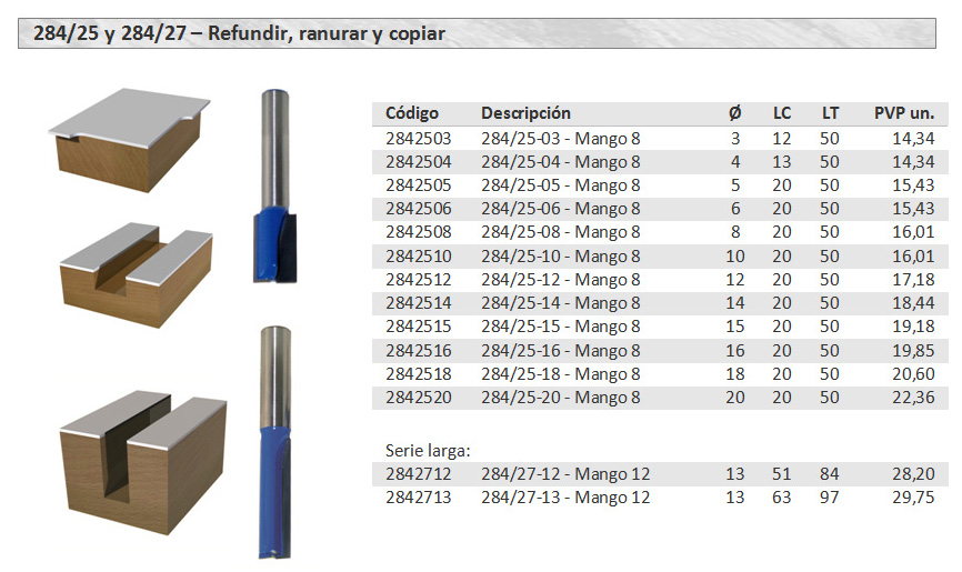 En stock Fresolines portátil 284/16 - Refundir en bisel 284/16 21,27 € 284/16 - Fresa recta para Refundir en bisel (otros modelos para biseles: 284/30 y 284/33) Ver