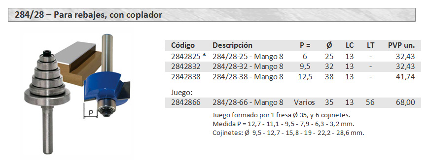 (la 284/28-66 contiene fresa + 6 copiadores)