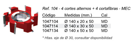 Fresa Ø 140 x 50 eje, para galces, con 4 cortes alternos (2+2) y 4 precortadores (2+2)