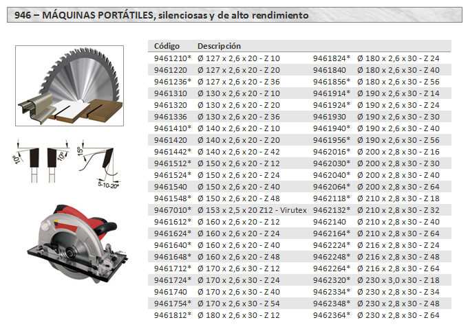 Stock: Las sierras con un * a la derecha del código, están normalmente en stock, excepto venta. Resto, consultar a tienda@tecnimadera.es