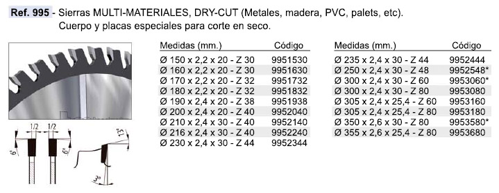 Sierra apropiada para trabajo en máquinas portátiles e ingletadoras cuando se trabajan diversidad de materiales, como:
