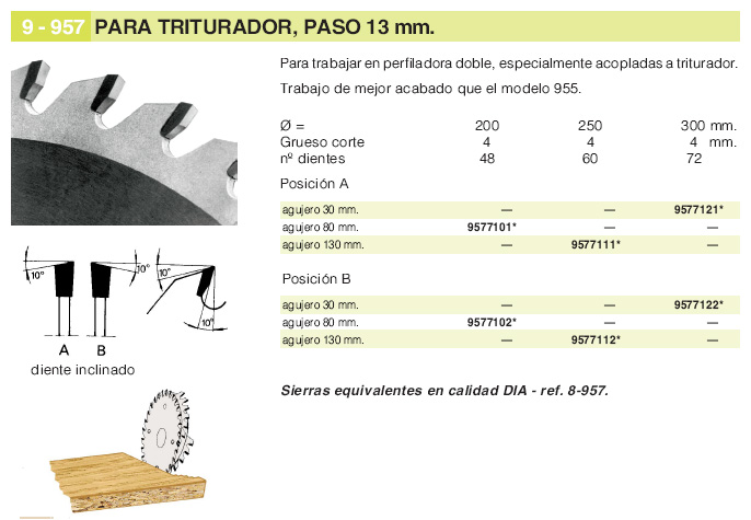 Para trabajar en perfiladora doble, especialmente acopladas a triturador. Trabajo de mejor acabado que el modelo 955.