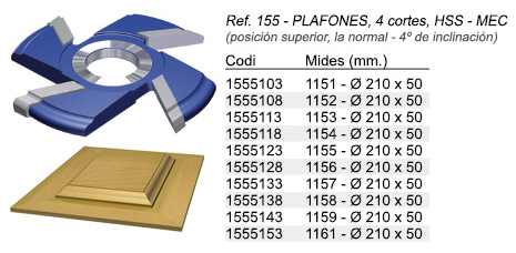 Fresa para plafones, 4 cortes, Ø 210 x 50 mm. eje, HSS