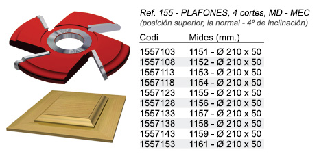 Fresa para plafones, 4 cortes, Ø 210 x 50 mm. eje, MD (Metal Duro)