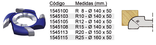 Herramienta para realizar 1/4 de radio convexo en maderas blandas (pino, abeto, etc).
