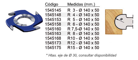 - En stock fresas de Ø 120x30 eje, pedir oferta a TIENDA@TECNIMADERA.ES