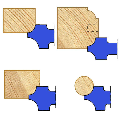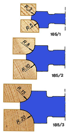 Juego 3 fresas de 2 cortes de HSS, 50 eje, para trabajos de redondear cantos, molduras, obtener palos redondos, etc.