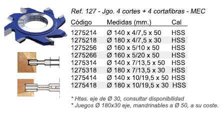 Juego regulable Ø 140 x 50 eje, para ranuras, con 4 cortes y 2+2 precortadores.