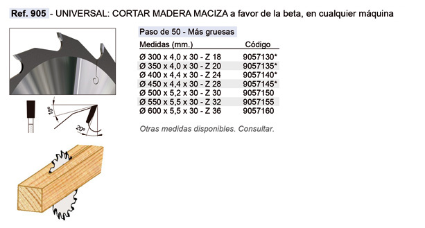 905 - Sierra universal, diente recto, para CORTAR MADERA MACIZA a favor de la beta, en cualquier máquina