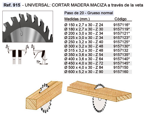 Ref. 915 - UNIVERSAL: Diente alterno, para CORTAR MADERA MACIZA a través de la veta